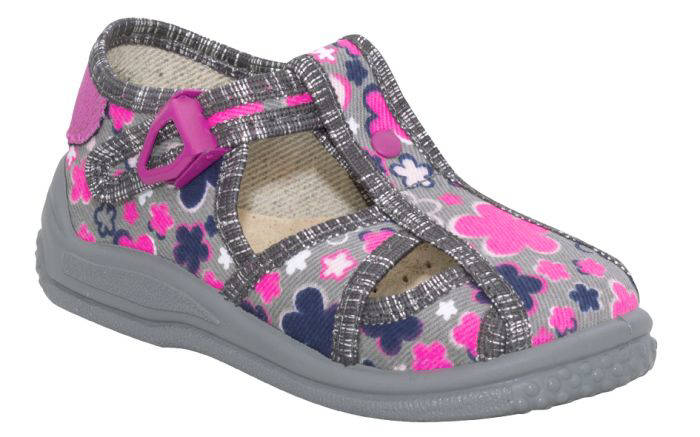 Dětské bačkory bighorn DITA se zapínáním na přezku a vzdušnou špicí. Materiál je vysoce kvalitní bavlna. Lehká pružná podešev vyrobená z PVC. Stélka je vyrobena z přírodní kůže a pružné pěny s aktivním uhlím. Kůže absorbuje přebytečnou vlhkost a aktivní uhlí nepříjemné pachy což chodidlu dává pocit svěžesti. Pata obuvi je vyztužena. Bačkora je velice pohodlná a lehká. Vyrobeno v EU.
