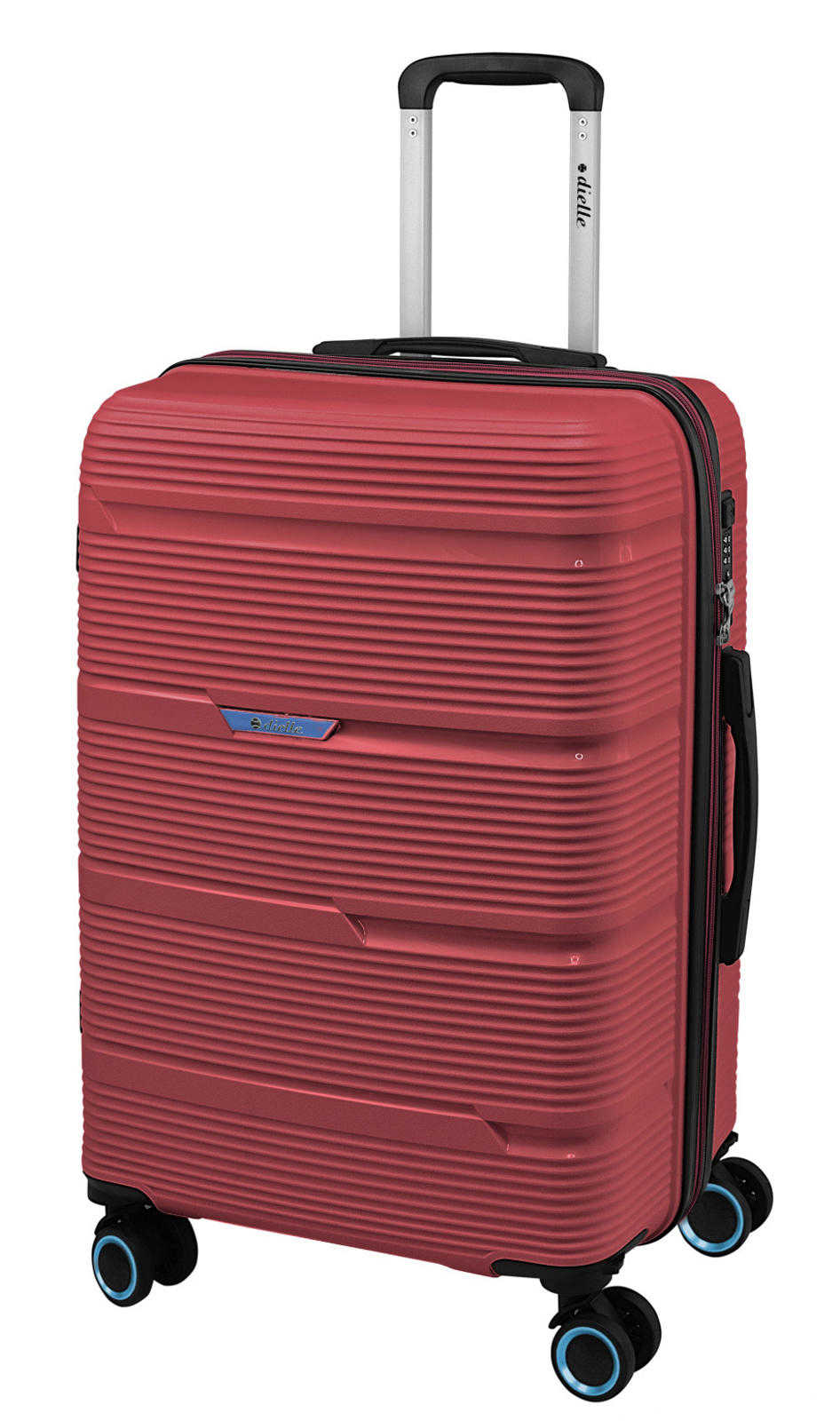 Moderní ultralehký plastový kufr 67 cm italské značky Dielle v bordó barvě s prolisy proužků.